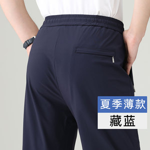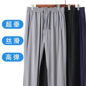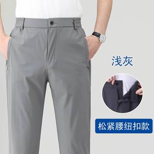 夏の氷糸速乾中高年男性カジュアルパンツ高弾性ウエストストレートズボン父スポーツパンツ