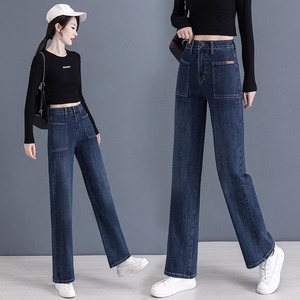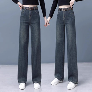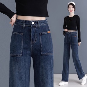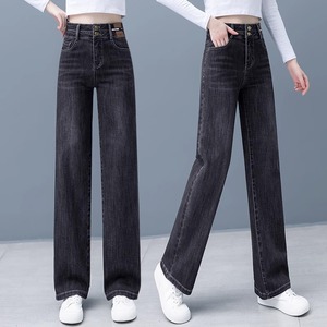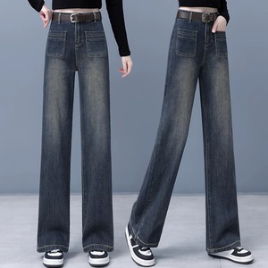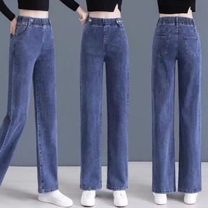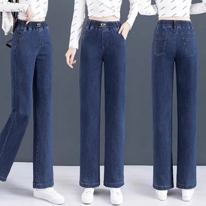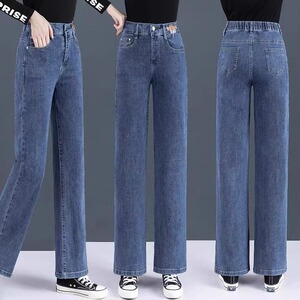 ソフトデニムストレートパンツ、細身ワイドパンツ、春秋夏用、大きいサイズ、ゆったり、身長アップ、伸縮性、ハイウエスト、レディースパンツ