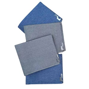 デニムのサイドの金属の簡単なお金は財布を挟みます。
