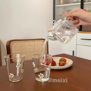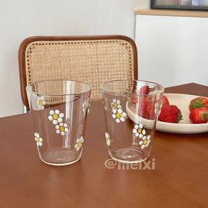 オリジナルデザイン春新作グラス小デイジーミルクカップ高ホウ素シリコンガラス純手作り耐熱カップ