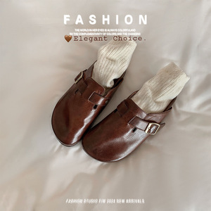 牛革の本革の美ラードの馬の皮の厚い底の包頭のベーケンの靴のハイヒールの女性のミュラーの怠け者の半スリッパは外に着ます。