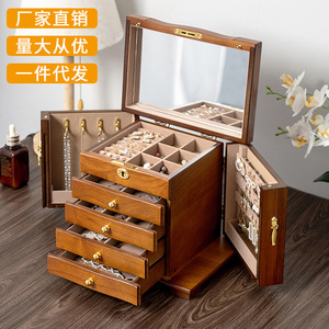 無垢材のジュエリー収納ボックス、精巧な古代風、多層、大容量、豪華なジュエリーボックス、イヤリング、ネックレス、越境彫刻