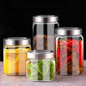ステンレス透明蓋密封缶は鉛フリーガラス貯蔵タンクの食品貯蔵を厚くして、四角い瓶に分けて水が漏れないようにします。