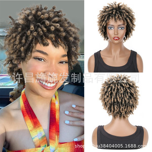 国境を越えたかつらアフリカ化学繊維爆発頭カバー汚れたお下げ頭カバーかつらカバーアフリカ爆発頭ふわふわ巻きかつら