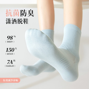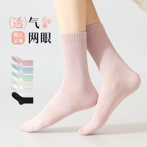 2024新品靴下レディース中筒春タイプ通気レディース四季色コットンストッキング抗菌防臭スポーツソックス