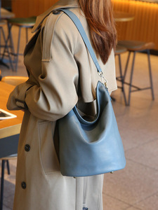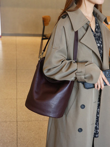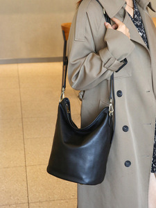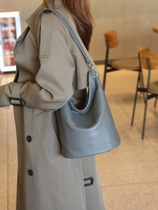 本革レディースバッグ 2025 新しいトレンディなファッションカジュアル第一層牛革トートバッグ大容量ショルダー通勤バケットバッグ
