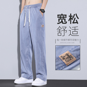 天糸ジーパン男型夏直筒ゆったりとした広脚モップ夏超薄型氷糸カジュアルズボン