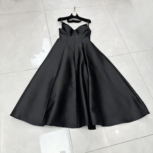 十三行のフレンチベルベットのストラップを締めて腰の垂れ下がった感じの大きい裾の小さい黒いスカートのドレスのワンピースa3 #6589