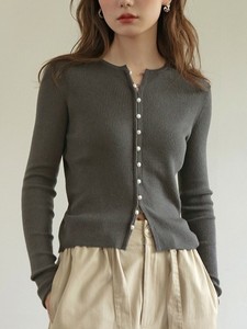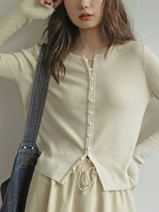 レイジーな気質の白いボトムシャツ春の女性の長袖スリムニットカーディガンスタイルのセーター
