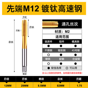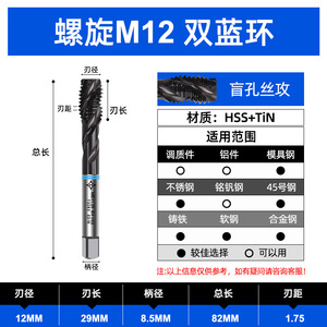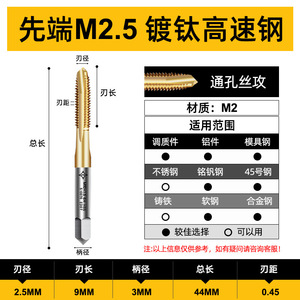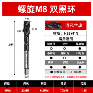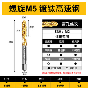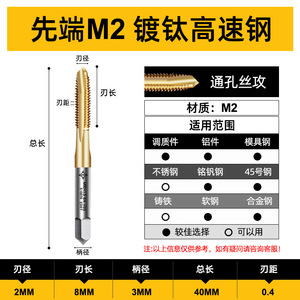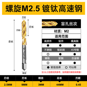 コバルト先端付きバセットタップ ステンレス鋼スパイラルネジ先端 高強度機械タップ m4m5m6m8