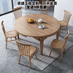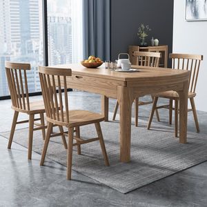 北欧の実木の食卓は伸縮して食事をします。