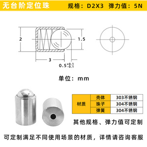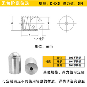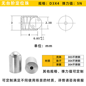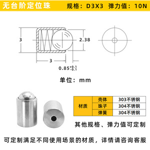 ステンレス製ビーズsus304プッシュ式ビーズスプリング鋼珠位置決めプランジャ階段なし光身位置決めビーズ