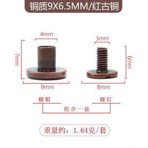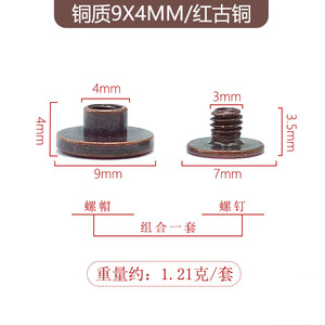 赤古銅色9x4mm銅帳簿釘3.5mm長鉄ねじ
