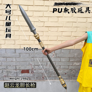 三国の兵器の子供のおもちゃPU趙雲の銃の斧の越王は昔の縁日の道具をまねて古代の漢剣を屋台します。