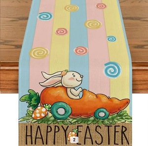 新しい北欧のイースターのウサギの卵のテーブルの旗の祝日の装飾の雰囲気感のリネンのテーブルの旗