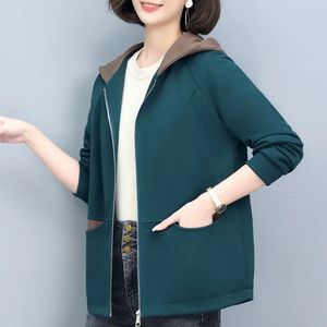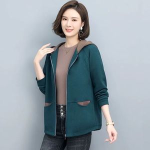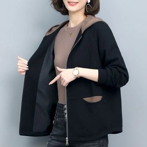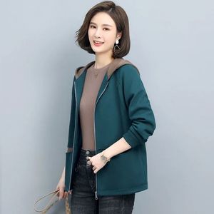 中年のお母さんの短いコートの女性の春秋の新型の2024のゆったりしている大きいサイズの婦人服のカジュアルなファッションの色合わせの帽子の上着
