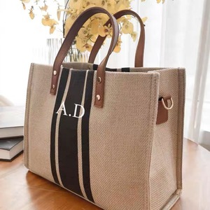 韓国版レディース手持ちブリーフケース職業通勤ストライプシンプルワンショルダー大きいバッグins大容量キャンバスバッグ