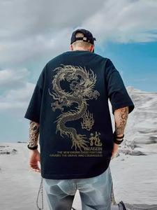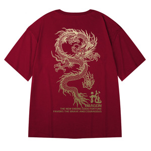 本命年紅国潮半袖tシャツ男2024年夏新作龍年大サイズ上服潮牌半袖