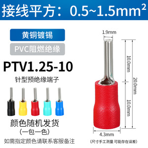Ptv針状事前絶縁端子1.25/2/5.5-10/12/18冷圧端子ピン端子