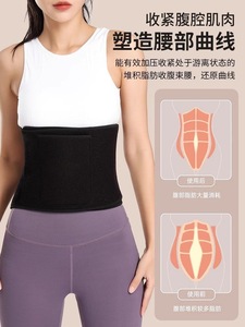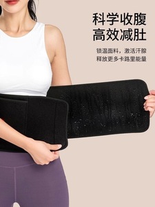スポーツランニングで汗をかいています。女性の体のベルトは腰を締めます。