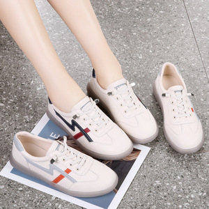 本革のお母さんの靴の靴の女性の牛の筋肉の底の足は妊婦の靴の柔らかい底の滑り止めのカジュアルな靴の春の平底の白い靴を踏んでいます。