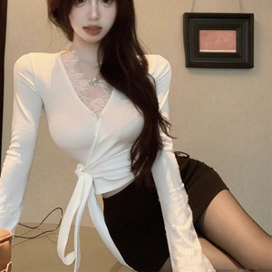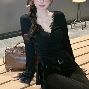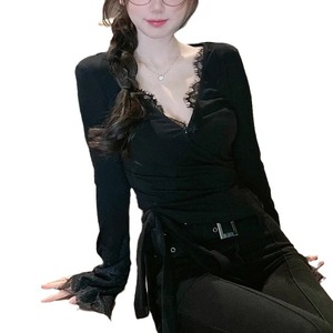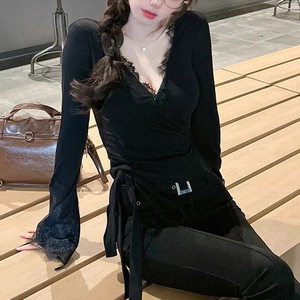 国境を越えた工場欧米のレースはvネック長袖tシャツの女装春夏に上着の震え音をつけて淘宝する