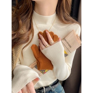 高級な洋気の流行の半高襟のニットの女性の秋冬の上着は底を打って身を修める長袖はやせている中で襟の内の婦人服を現します。