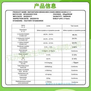 阜豊分枝鎖アミノ酸2:1:1食品級栄養強化剤bcaa 25kg/バレル分枝鎖アミノ酸粉