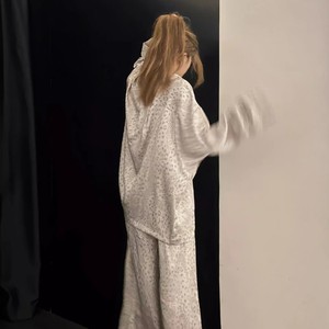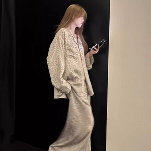 韓国風高級感レオパード柄アイスシルクパジャマ レディース 春秋新作 アイスシルク長袖長ズボンルームウェア 上下セット