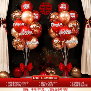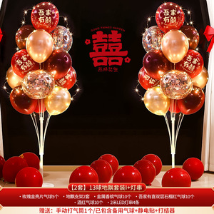 結婚風船が漂っていて、婚約リビングルームの結婚シーンをセットしています。