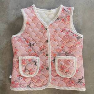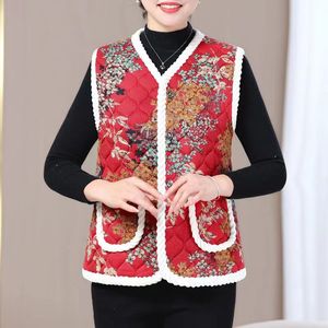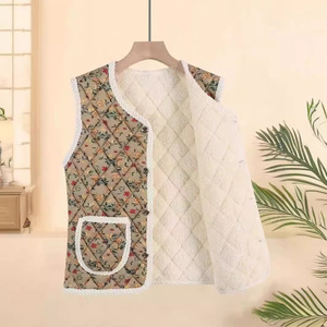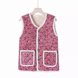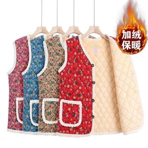 東北風花柄ベスト 秋冬用綿入れ厚手フリースボタン付きプリント柄暖かい高齢者向け綿入れ服 花柄デザイン