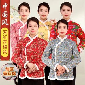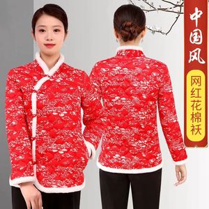 ネットの赤い花の綿入れの家の小さい花の厚い保温のプリントの東北の大きい花の上着の中で高齢者の服装の卸売り