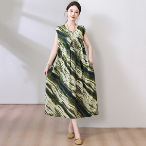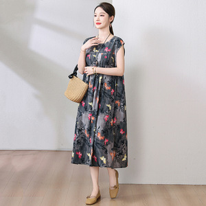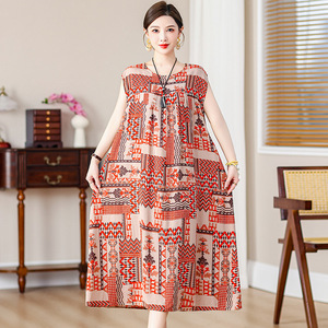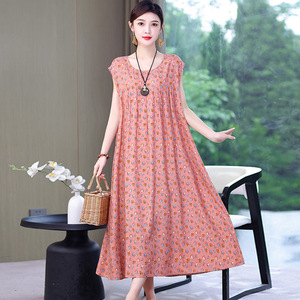 お母さんの綿のシルクのワンピースの半袖の中で老年の夏服の大きいサイズの婦人服は太ってゆったりしている人工綿のスカートの女性をプラスします。