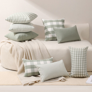 2025 新ポリエステル綿キャンバスカジュアルクッション腰枕チェック柄ストライプビーングリーンシリーズリビングルームソファ枕カバー