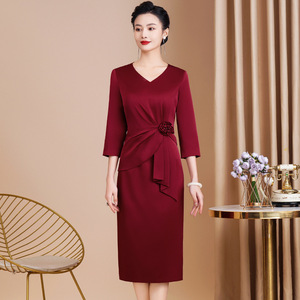 新しい喜姑の披露宴のドレスの若いファッションのワインの赤い喜姑のスカートはやせているレトロな高級のワンピースを現します。