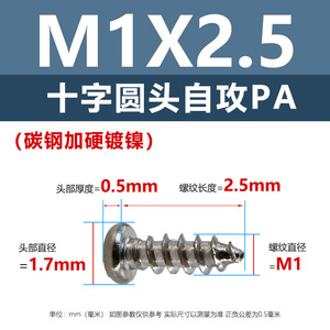 ニッケルメッキPA十字穴付き皿頭タッピングネジ硬化m1m5十字穴付き皿頭電子製品用ネジ1.4m2m3m