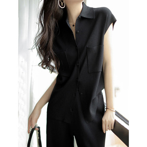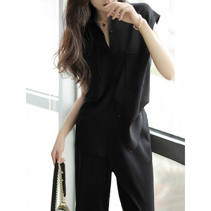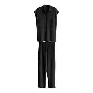 7029調子と雰囲気が同時に持っています。垂感no * 1ニット上着 + ワイドパンツ2点セット