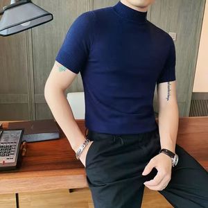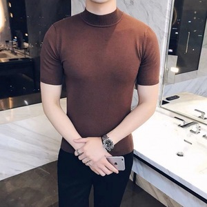 黒い丸首半袖ニットの底のシャツのメンズ秋冬の純欲な風の中にゆったりとした通勤の短いセーターの上着を掛けます。