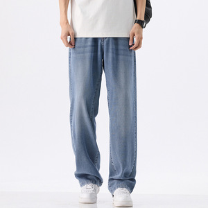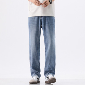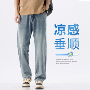 ライゼル天糸弾力ジーンズ男性2025夏の薄い氷糸の広い足のゆるいストレートカジュアルズボン