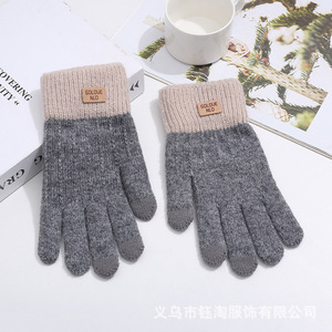 羊のキャメルのニットのタッチパネルの手袋の女性は全部指の保温が厚いです。