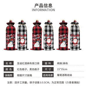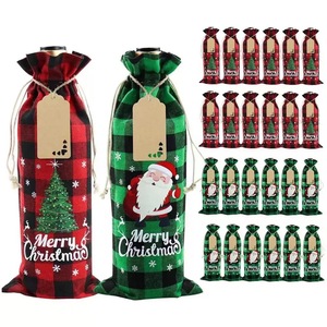 クリスマスの格子のワインの束のポケットのセットのシャンパンの綿の麻の布のロープを引いて贈り物のプレゼントの袋を包装して卸売りします。