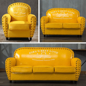 レトロな一人掛け小型ソファ、二人掛けバーカフェ席、三人掛け衣料品店寝室用シート、革張り布張り