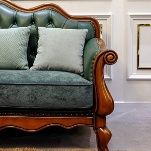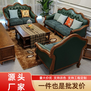 古典的なアメリカの田舎のソファーの真皮123の組み合わせの客間の家具のヨーロッパ式の簡単で美しい軽豪華な全実木の小戸型