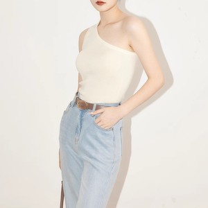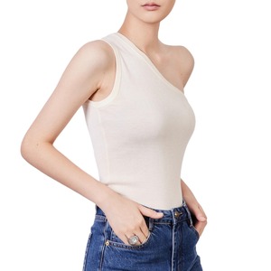 ブロガーの肩のベストの上着の女性の绢糸の半分の肩の白い夏の中でニットの肩のキャミソールを组みます。