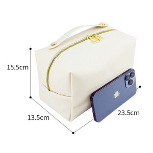 クロスボーダークリーム感皮质ポーチ大容量高级感インスタ风手持ち旅行ポータブル化粧ポーチ