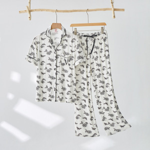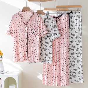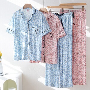 VS外国貿易パジャマ女春夏タイプ半袖長ズボン冷感モーデール柔らかいゆるい夏の家庭服セット