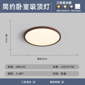 超薄型寝室天井灯新中国式レトロ実木客間灯現代シンプル全スペクトル保護眼書斎灯具