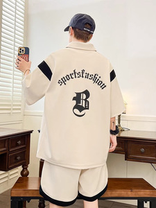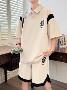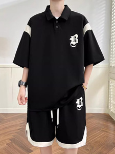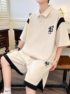 半袖スポーツスーツ男子青少年ゆるいカジュアル襟poloシャツファッションブランドかっこいいtシャツ2点セット
