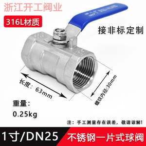 201/304/316不锈钢一片式球阀 内螺纹4分6分1寸2寸 DN15 20 25
