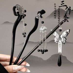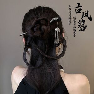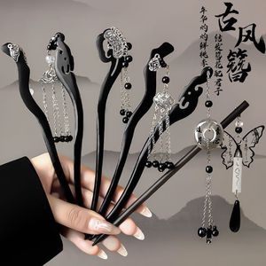 古風黒檀木かんざし女性新中国式高級感後頭部ヘアピン